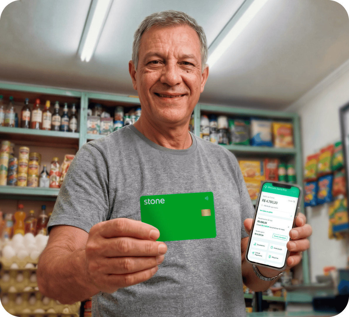 Por meio do aplicativo Stone: Maquininha e Conta PJ, você consegue gerir o seu negócio com mais facilidade, tendo todos os nossos serviços em uma única plataforma.